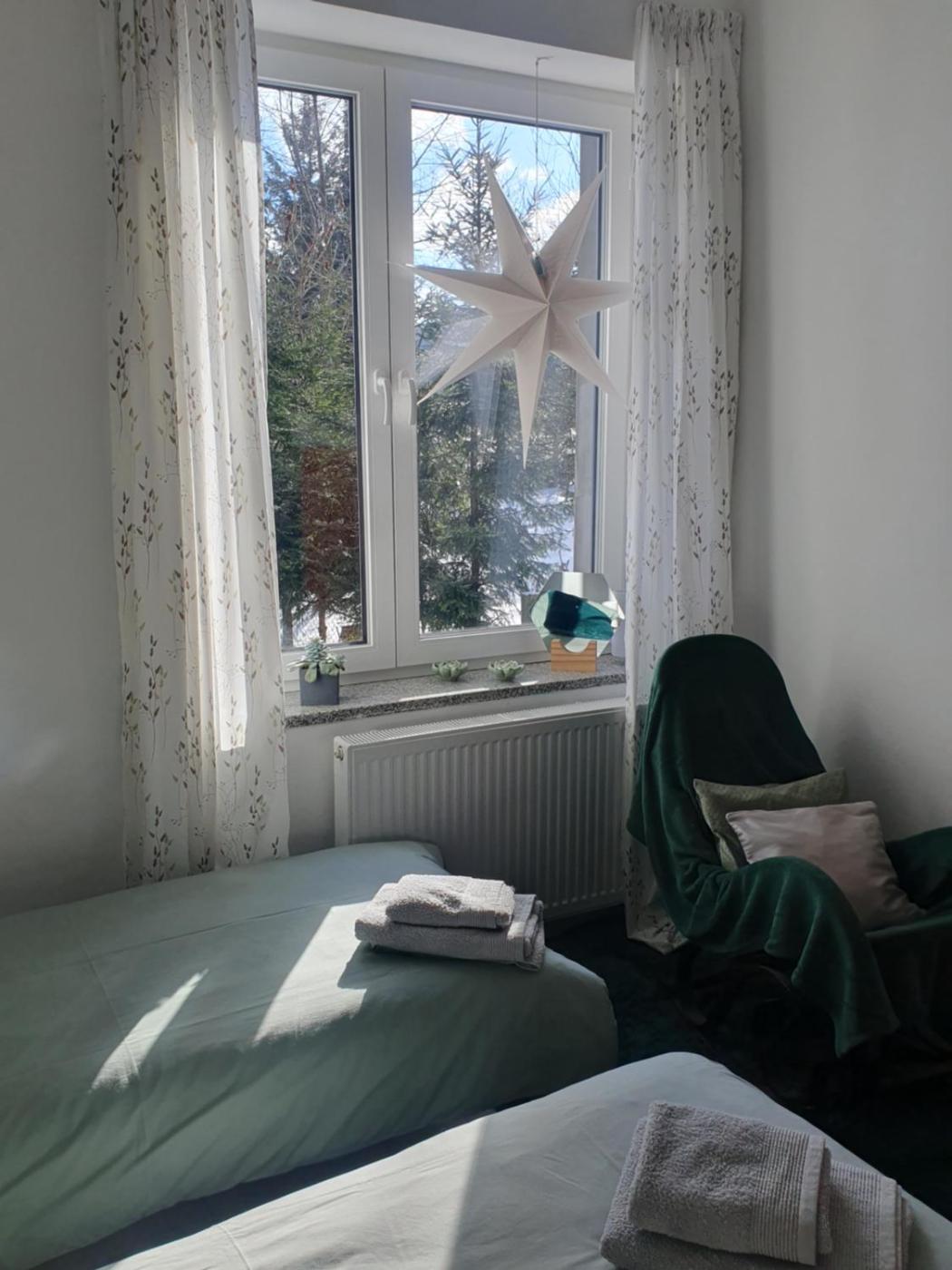 Apartament z 3 sypialniami. This spacious apartment includes 1 living room, 3 separate bedrooms and 2 bathrooms with a shower and free toiletries. Guests will find a stovetop, a refrigerator, kitchenware and a microwave in the fully equipped kitchenette. The apartment also features a barbecue. Boasting a terrace with garden views, this apartment also offers a private entrance and a flat-screen TV. The unit has 5 beds. Apartament - 8 osobowy. Powierzchnia pokoju ok.: 100 mkw.