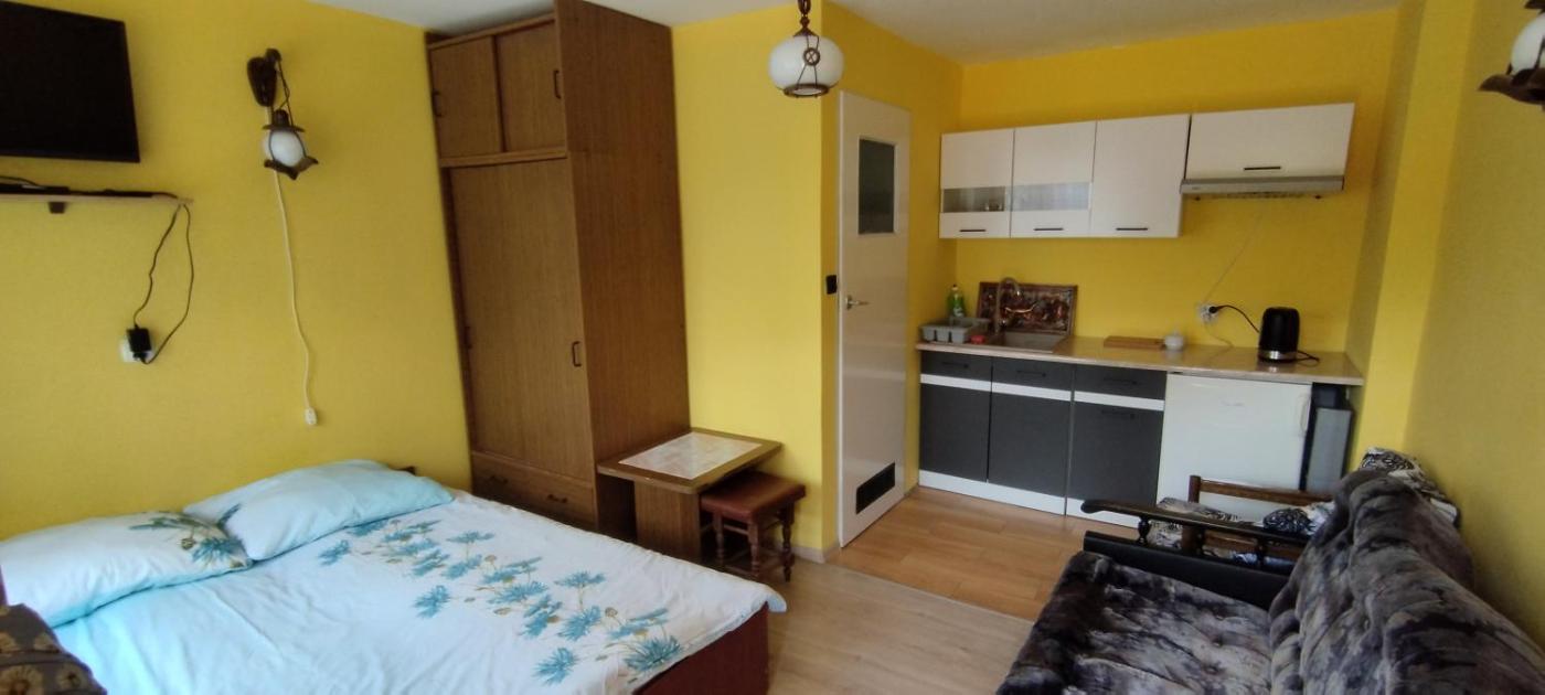 Pokój rodzinny. The family rooms kitchenette, which has a refrigerator and kitchenware, is available for cooking and storing food. The family room features a wardrobe and an electric kettle, as well as a private bathroom boasting a shower. The unit has 3 beds. Rodzinny - 4 osobowy. Powierzchnia pokoju ok.: 16 mkw. ;