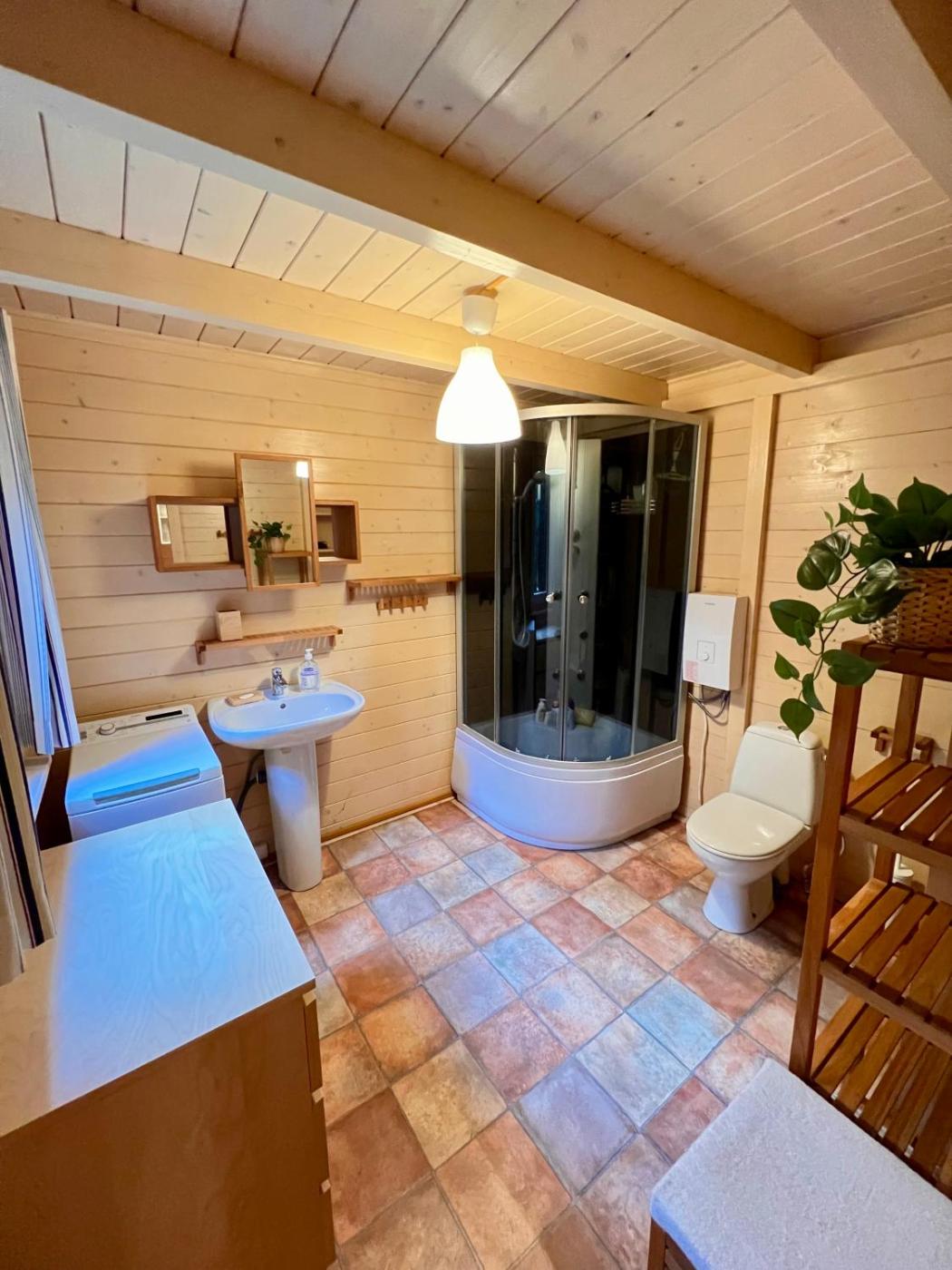 Dom z 2 sypialniami. This air-conditioned holiday home features 1 living room, 2 separate bedrooms and 1 bathroom with a shower. Meals can be prepared in the well-fitted kitchenette, which has a refrigerator, kitchenware and a microwave. The holiday home features a washing machine, an electric kettle, a sofa as well as a terrace with garden views. The unit has 5 beds. Dom wakacyjny - 6 osobowy. Powierzchnia pokoju ok.: 70 mkw.