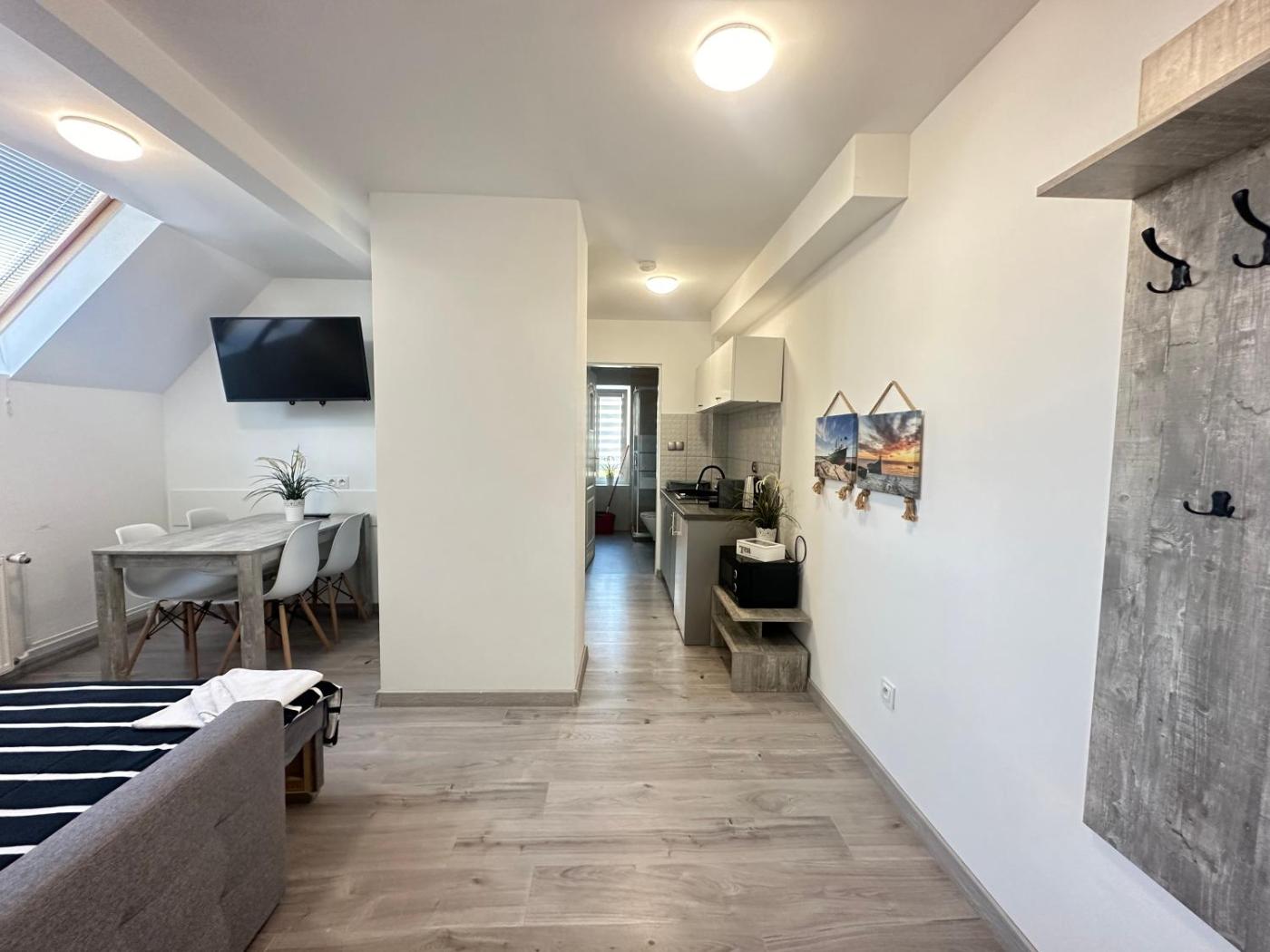 Apartament typu studio. This apartment is comprised of 1 living room, 1 separate bedroom and 1 bathroom with a walk-in shower and a hairdryer. Guests will find a stovetop, a refrigerator, kitchenware and a microwave in the well-fitted kitchenette. The apartment also has a barbecue. The apartment offers a flat-screen TV, a tea and coffee maker, a seating area, a dining area as well as garden views. The unit offers 2 beds. Apartament - 4 osobowy. Powierzchnia pokoju ok.: 33 mkw. ;